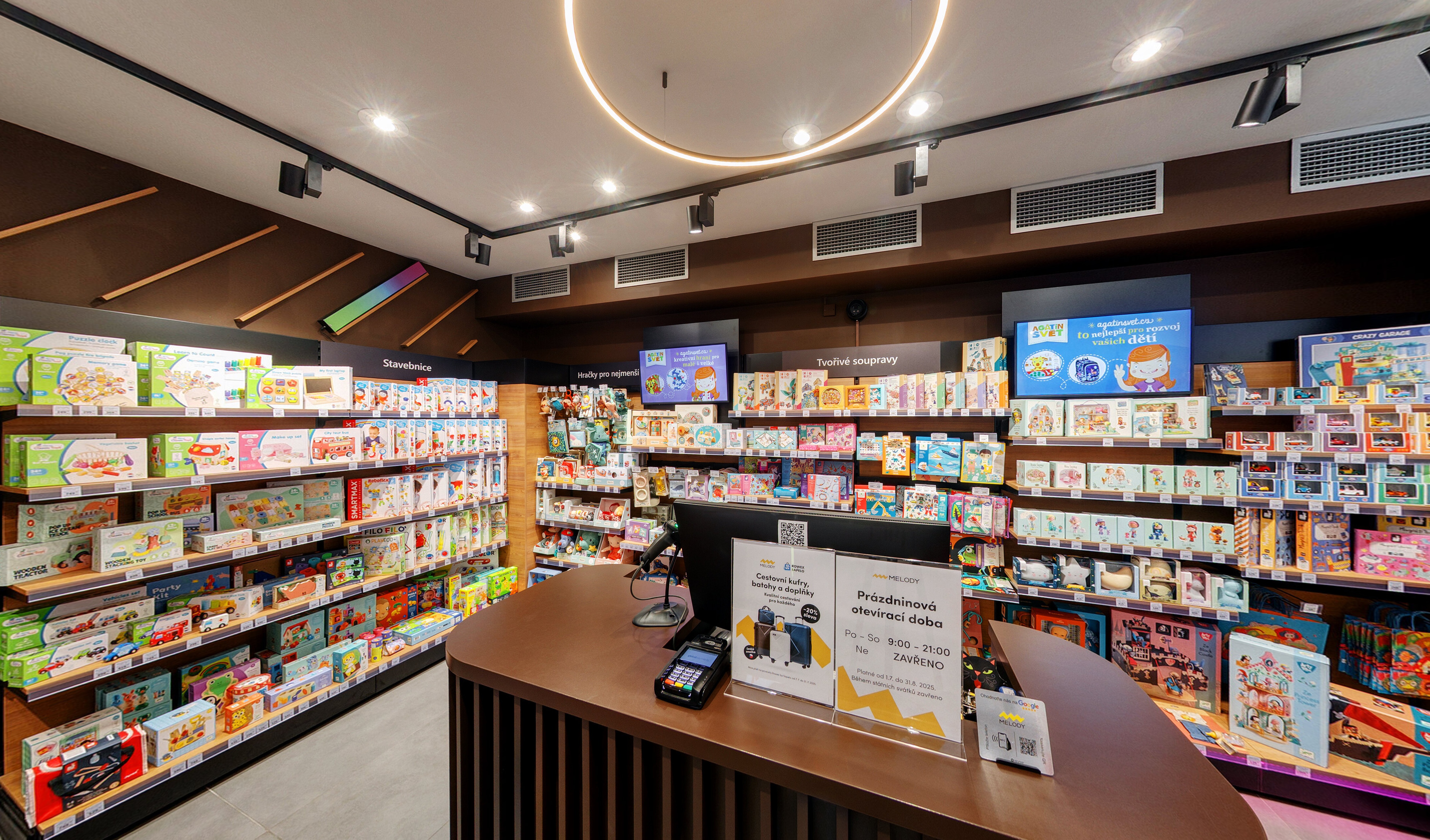 Přímo v srdci Brna na náměstí Svobody najdete moderní prodejnu Melody. Strategická lokalita u tramvajové zastávky obklopená obchody a restauracemi jako Starbucks, KFC a Zlatá loď nabízí vysokou fluktuaci lidí. Kolemjdoucí zaujme patrová prodejna velkými výkladními okny s podsvícenými logy e-shopů. Najdete zde rozmanitý výběr produktů v minimalistickém designovém interiéru.